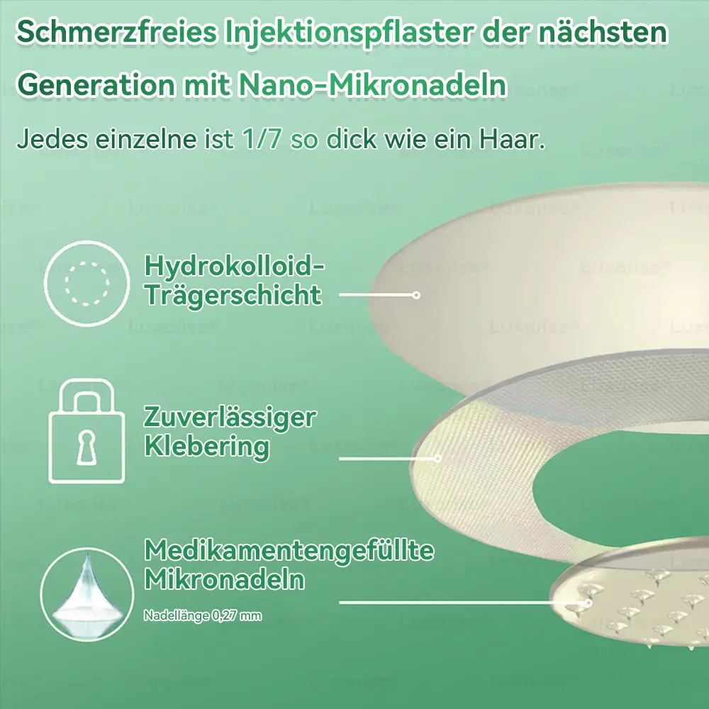 โ ย Sicher und wirksam:ย Unser fortschrittliches Nano-Mikronadelpflaster wird aus natรผrlichen Inhaltsstoffen und nach wissenschaftlichen Erkenntnissen hergestellt und inย ISO9001-ย konformen, GMP-zertifizierten Anlagen gefertigt, um Qualitรคt und Sicherheit zu gewรคhrleisten.