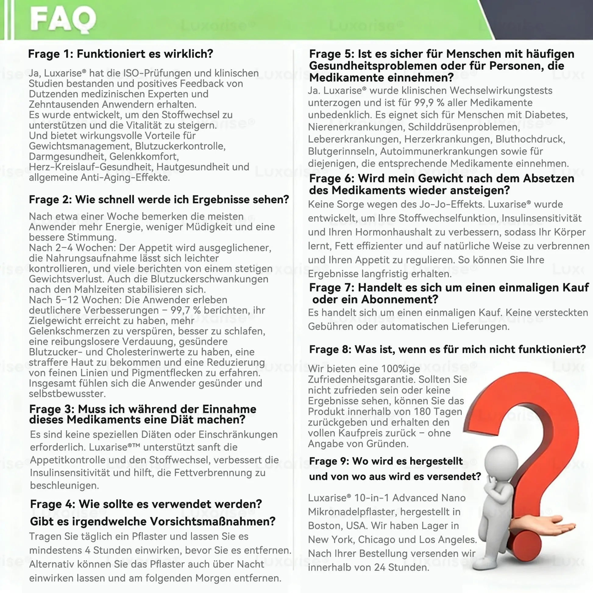 Wir bieten eine 180-Tage-Geld-zurรผck-Garantie.